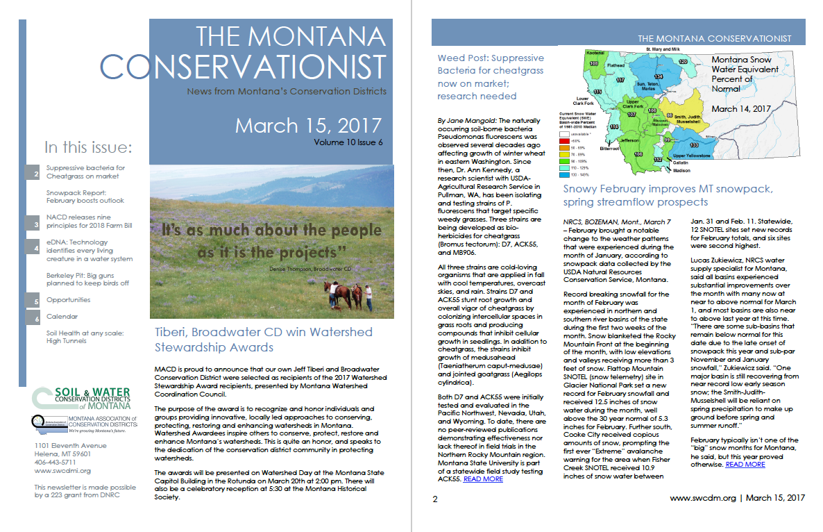 The Green Mountain Conservation District (GMCD) held a routine monthly meeting on March 15. Reports from the GMCD Administrator, Natural Resource Conservation Service, and the Soil and Water Conservation Districts of Montana were presented. Seven 310 applications were discussed. Meeting…